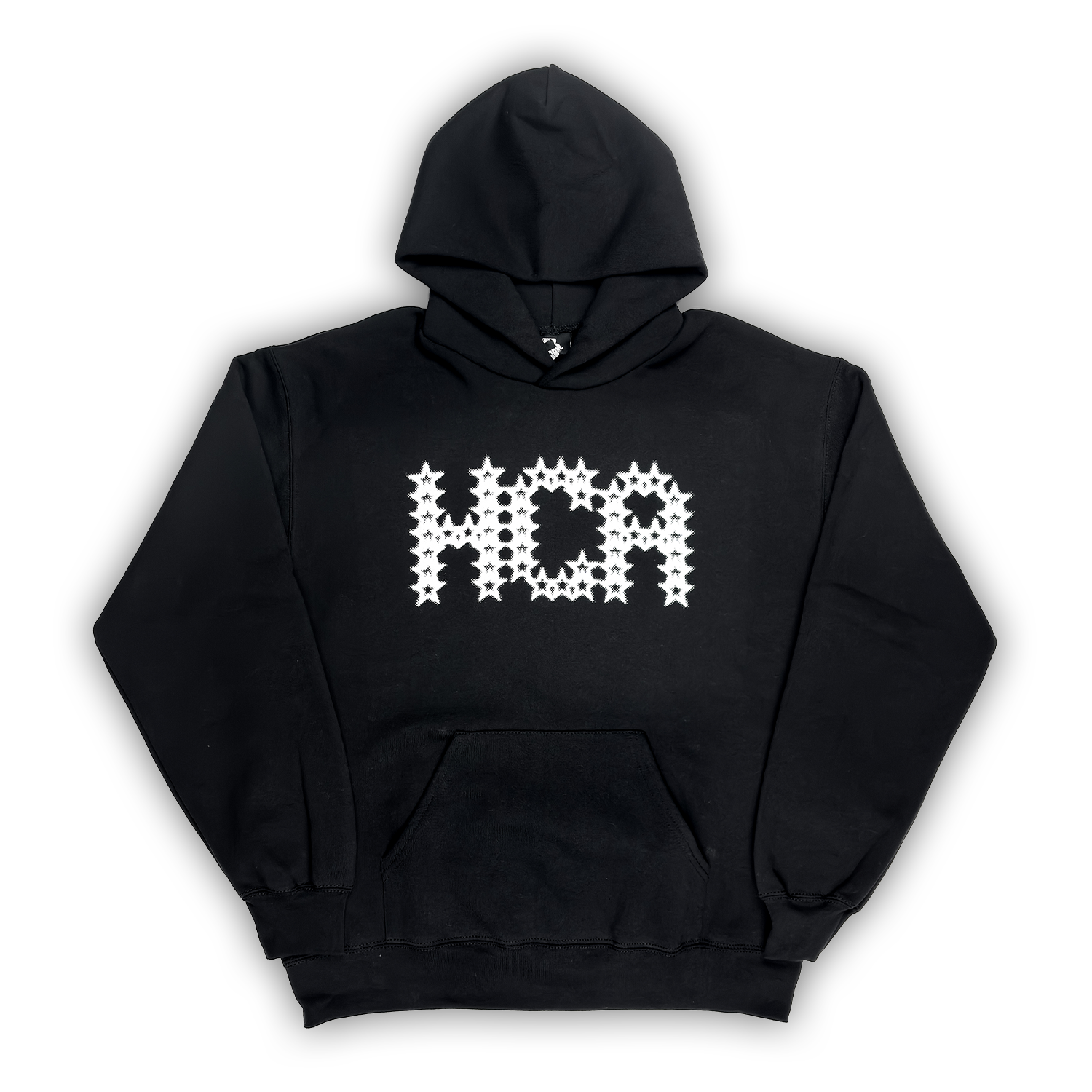 SUPERHEAVY BLACK HOODIE WITH "HCA STAR" LOGO WHITE SCREENPRINT