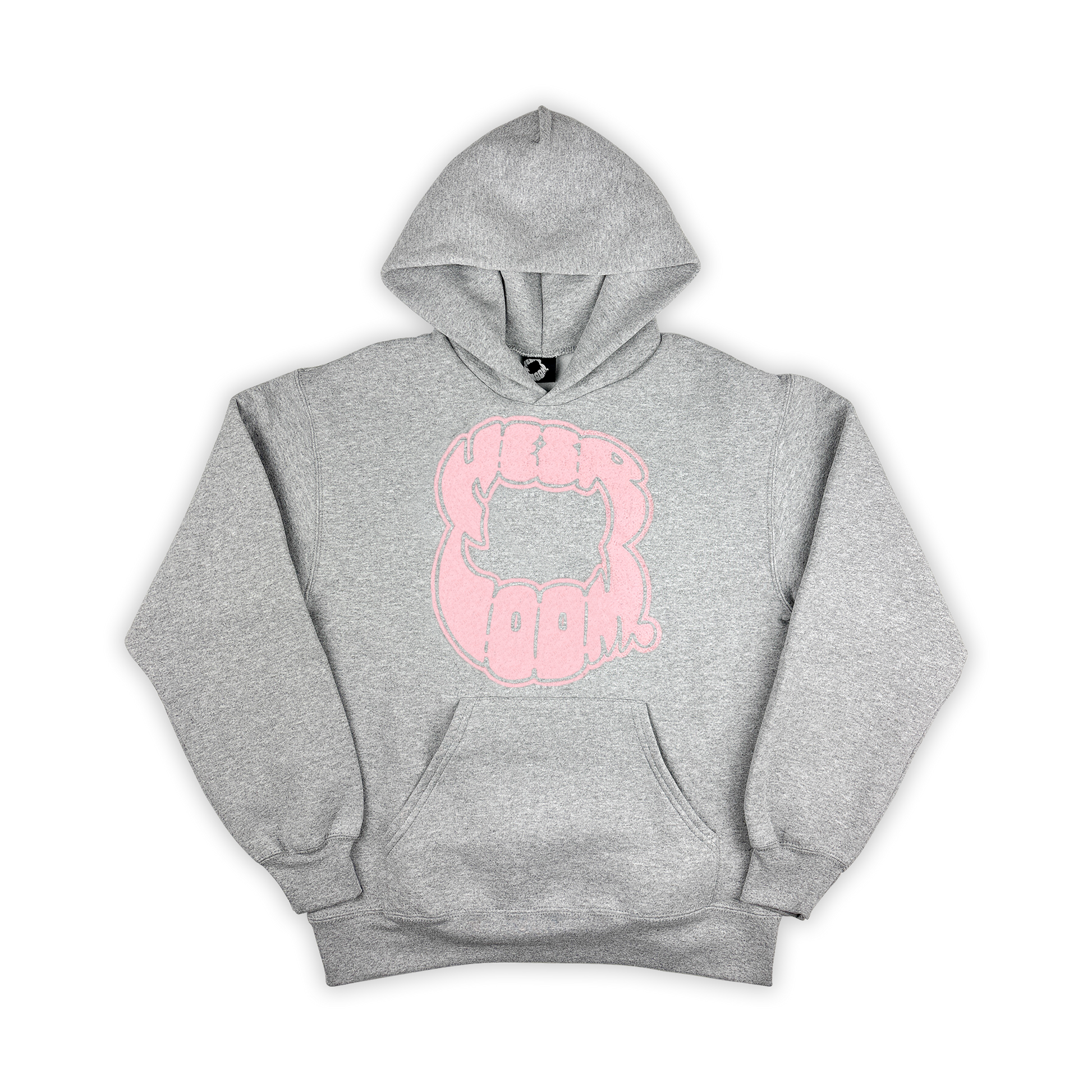 HEATHER GREY HEAVYWEIGHT HOODIE WITH PINK "FANGZ" SCREENPRINT ON FRONT
